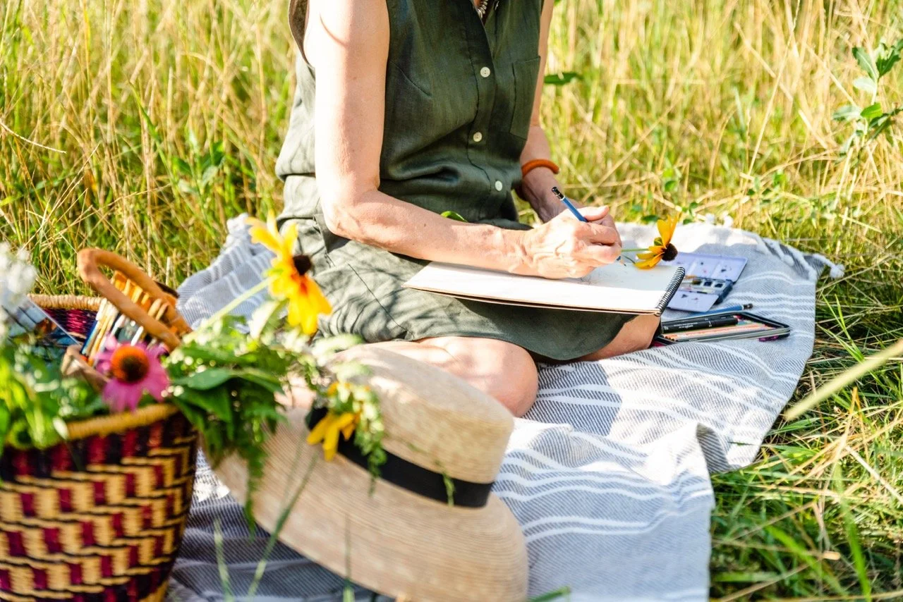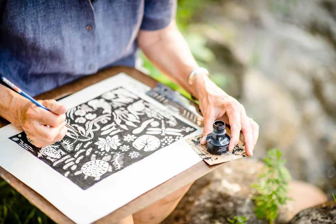 Scientific Illustration courses sharpened my eye, and my Textiles and Fibers BFA grew my love of color and fabrics, but it’s the time spent outdoors, teaching, and paying attention that really shapes how I design. What starts as observation becomes something meant to be lived with—a card that nudges you to write a note, a tea towel pulled out when friends are over, fabric chosen for a project made with care. There’s delight in everything I make, and an open invitation to surround yourself with details that spark connection, memory, and a sense of wonder.